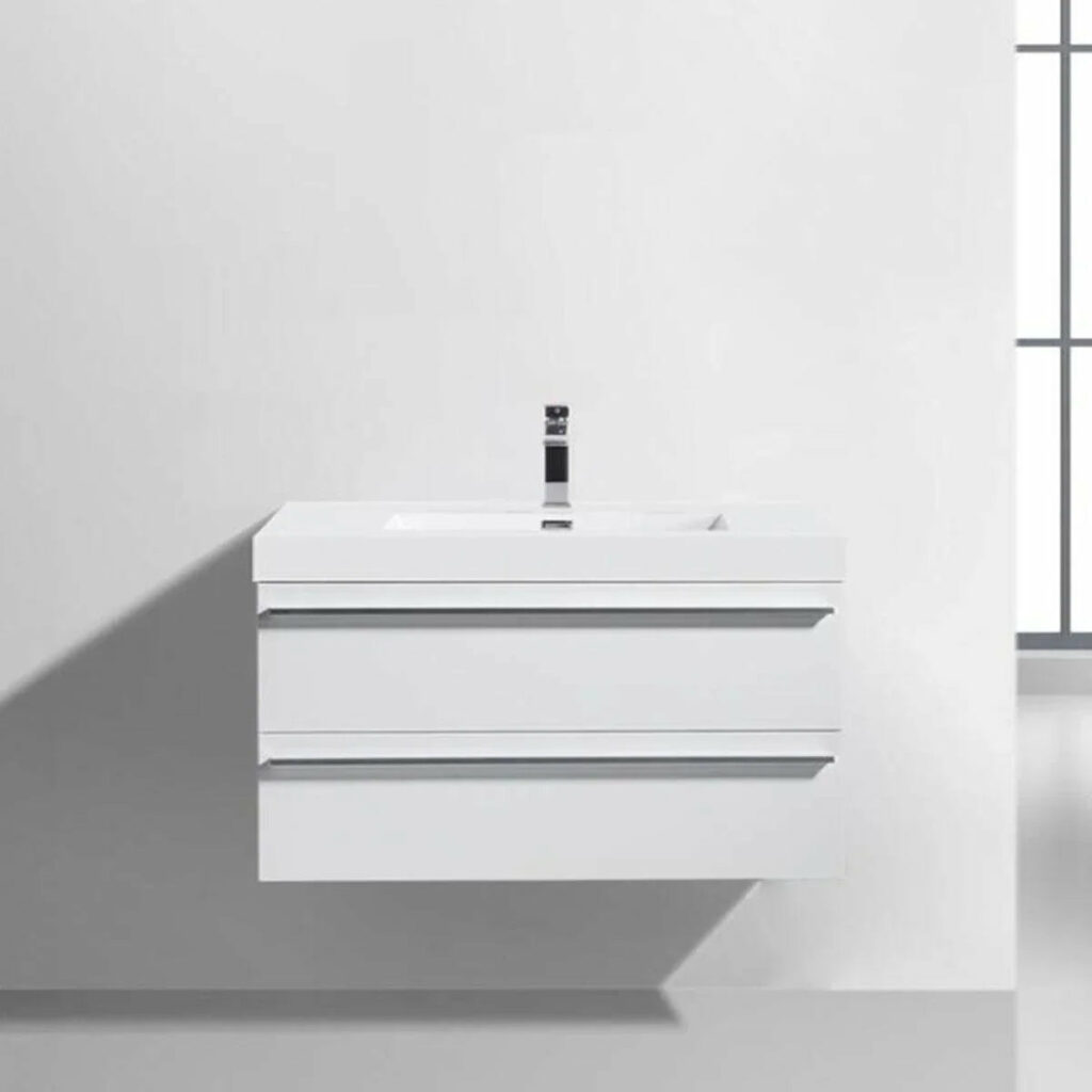 36″ White Wall Mount Bathroom Vanity with White Polymarble Countertop Sofia