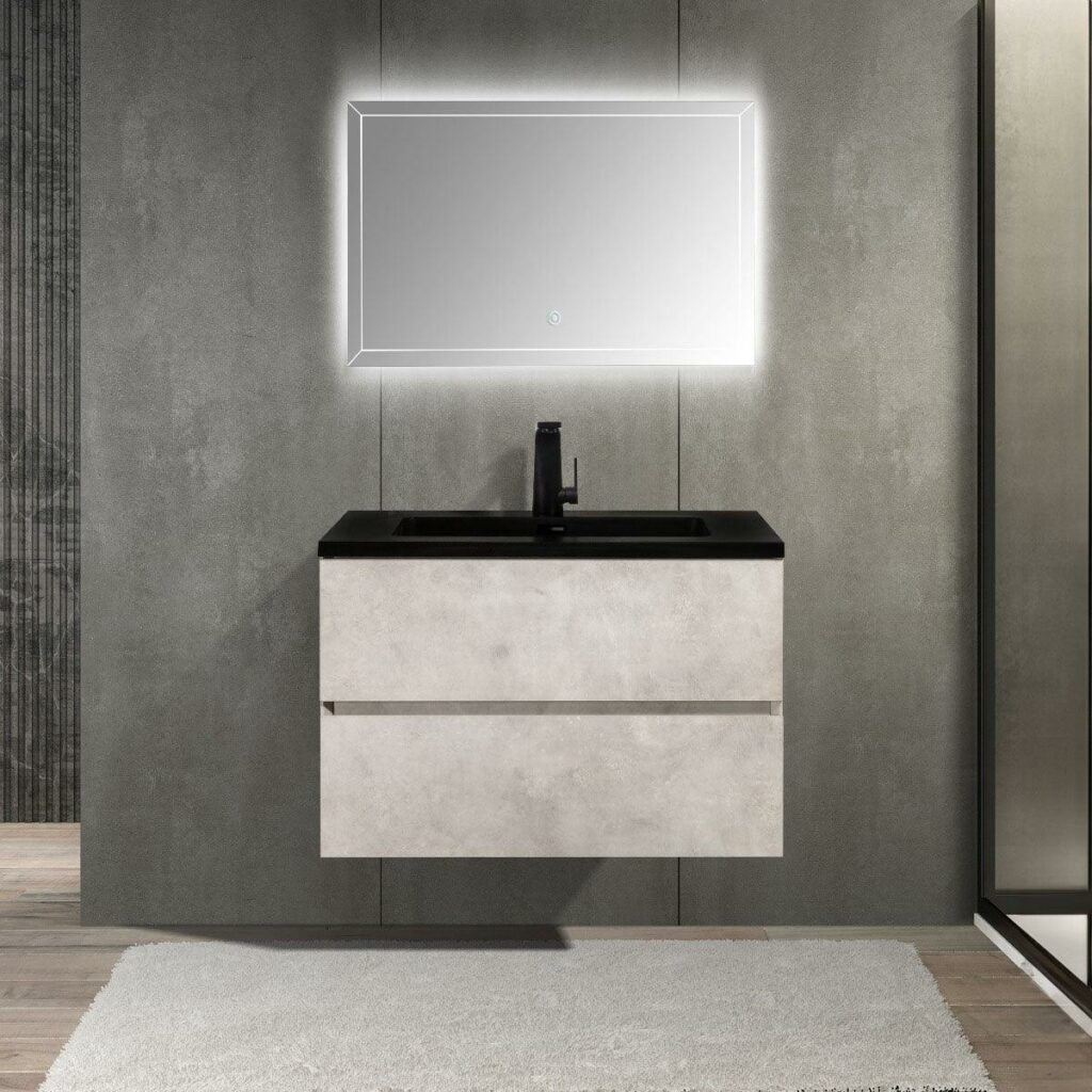 30″ Grey Wall Mount Bathroom Vanity with Black Engineered Quartz Countertop