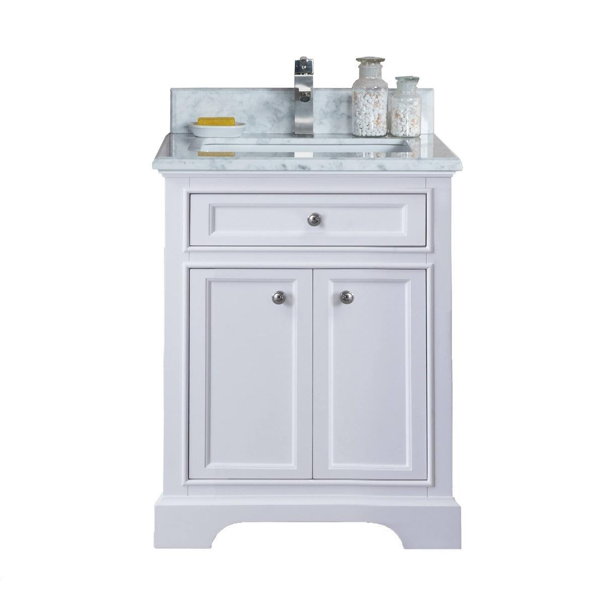 24″ White Freestanding Bathroom Vanity with Carrera Marble Countertop Milan