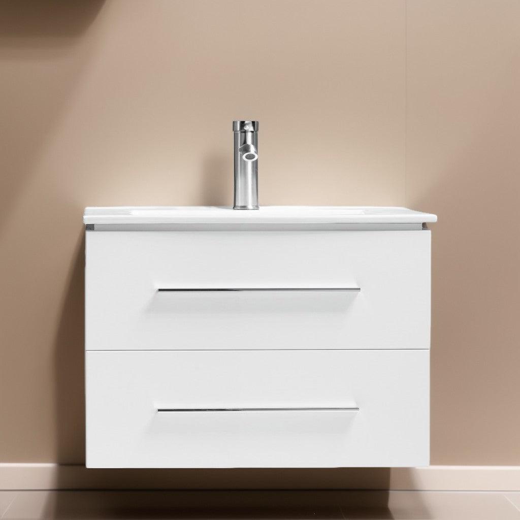 24″ White Wall Mount Bathroom Vanity with White Polymarble Countertop Sofia