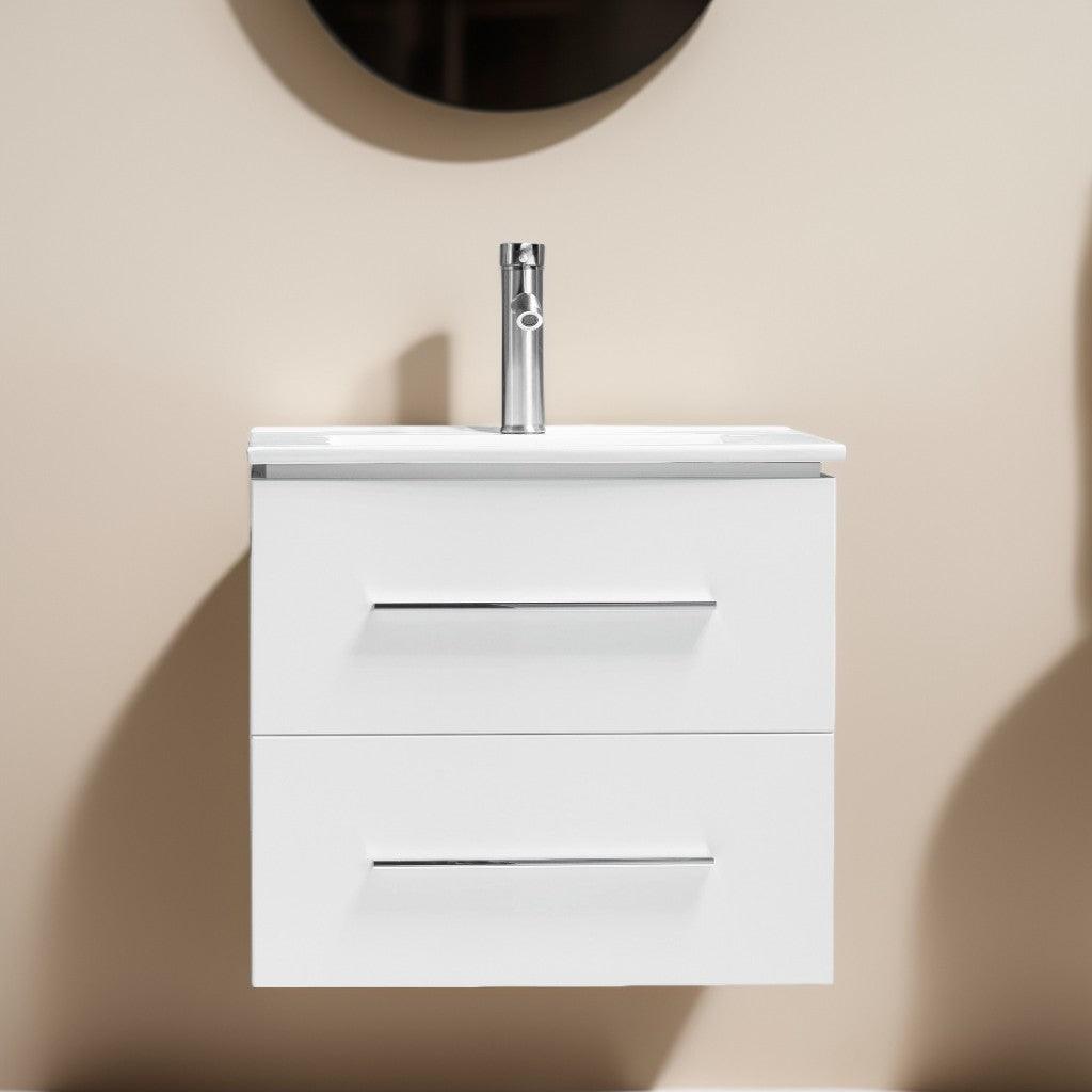 30″ White Wall Mount Bathroom Vanity with Black Engineered Quartz Countertop