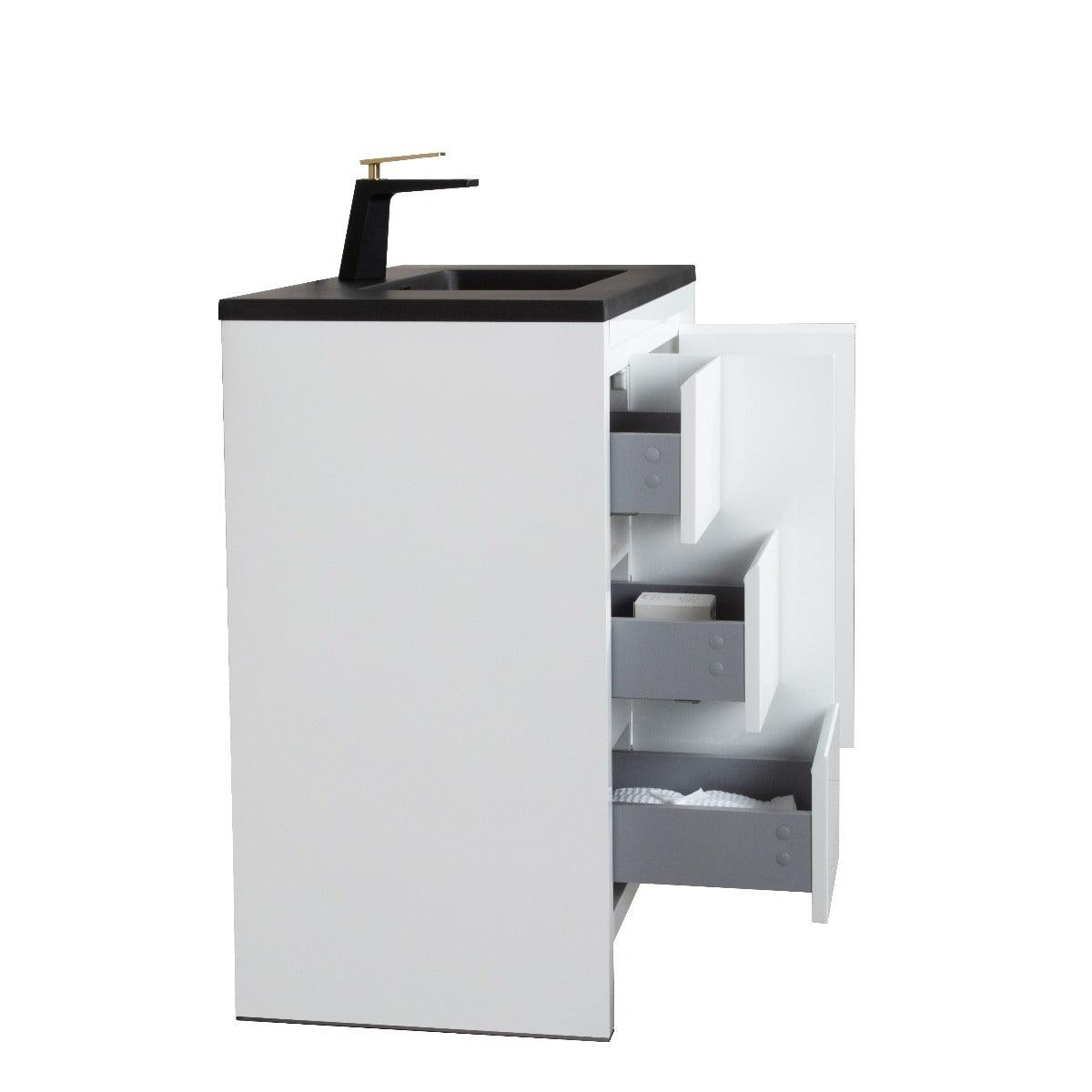 36″ Glossy White Freestanding Bathroom Vanity with Black Engineered Quartz Countertop