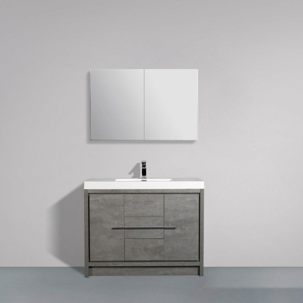 42″ Cement Freestanding Bathroom Vanity with White Polymarble Countertop
