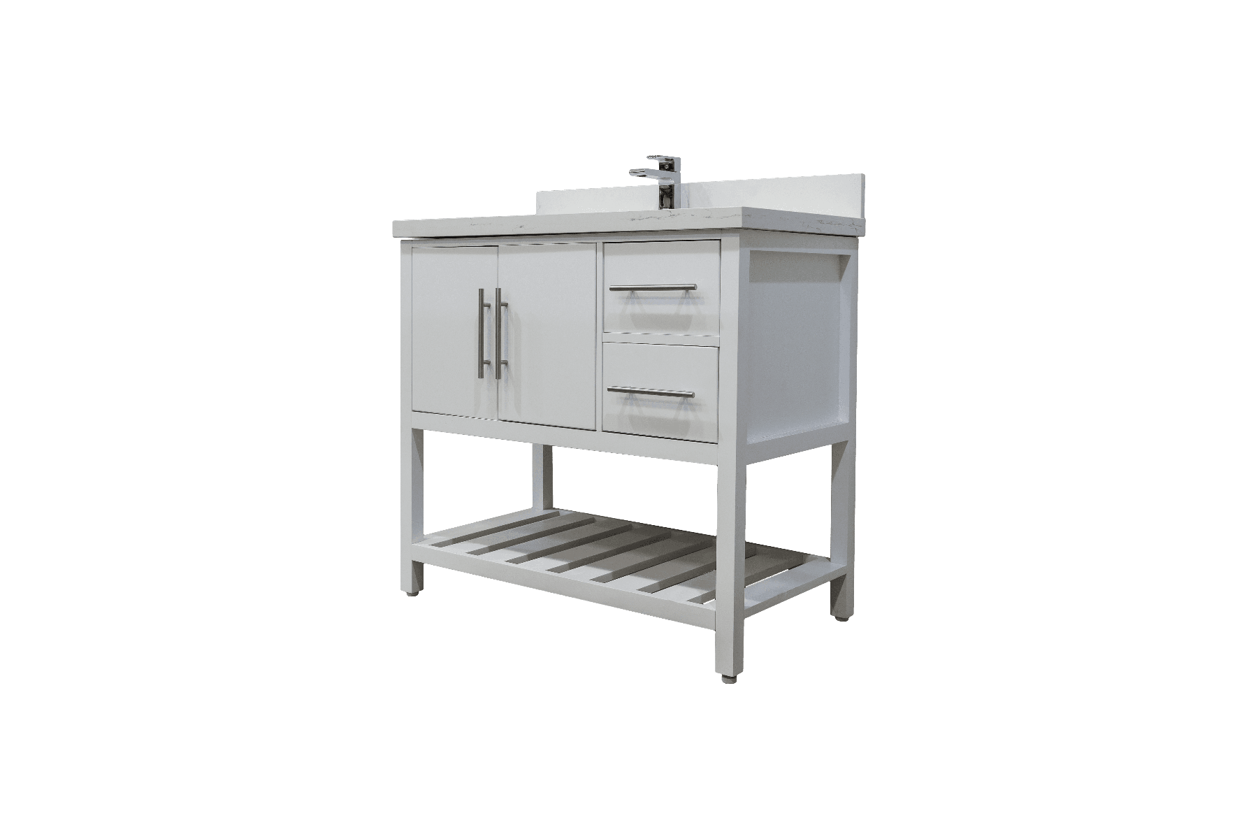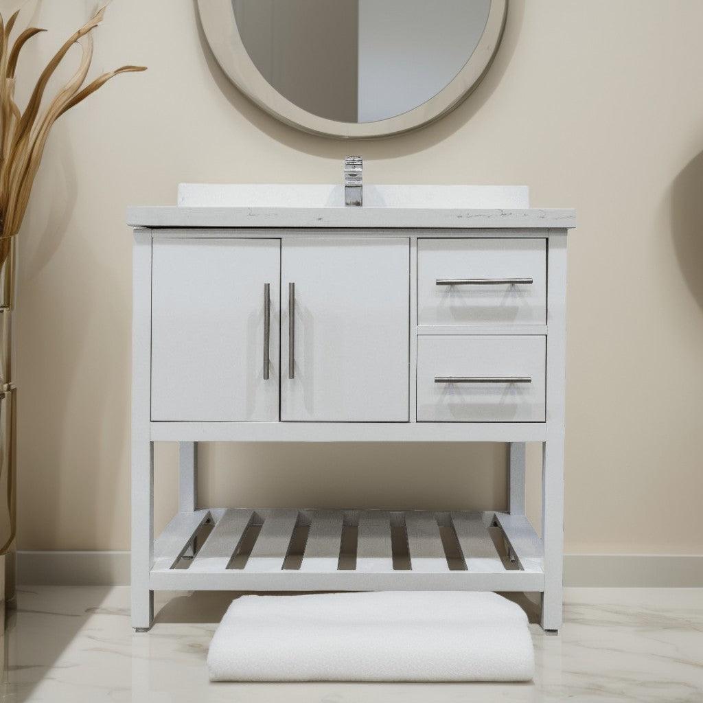 36″ White Freestanding Single Sink Bathroom Vanity with Calcutta Quartz Countertop Fiory