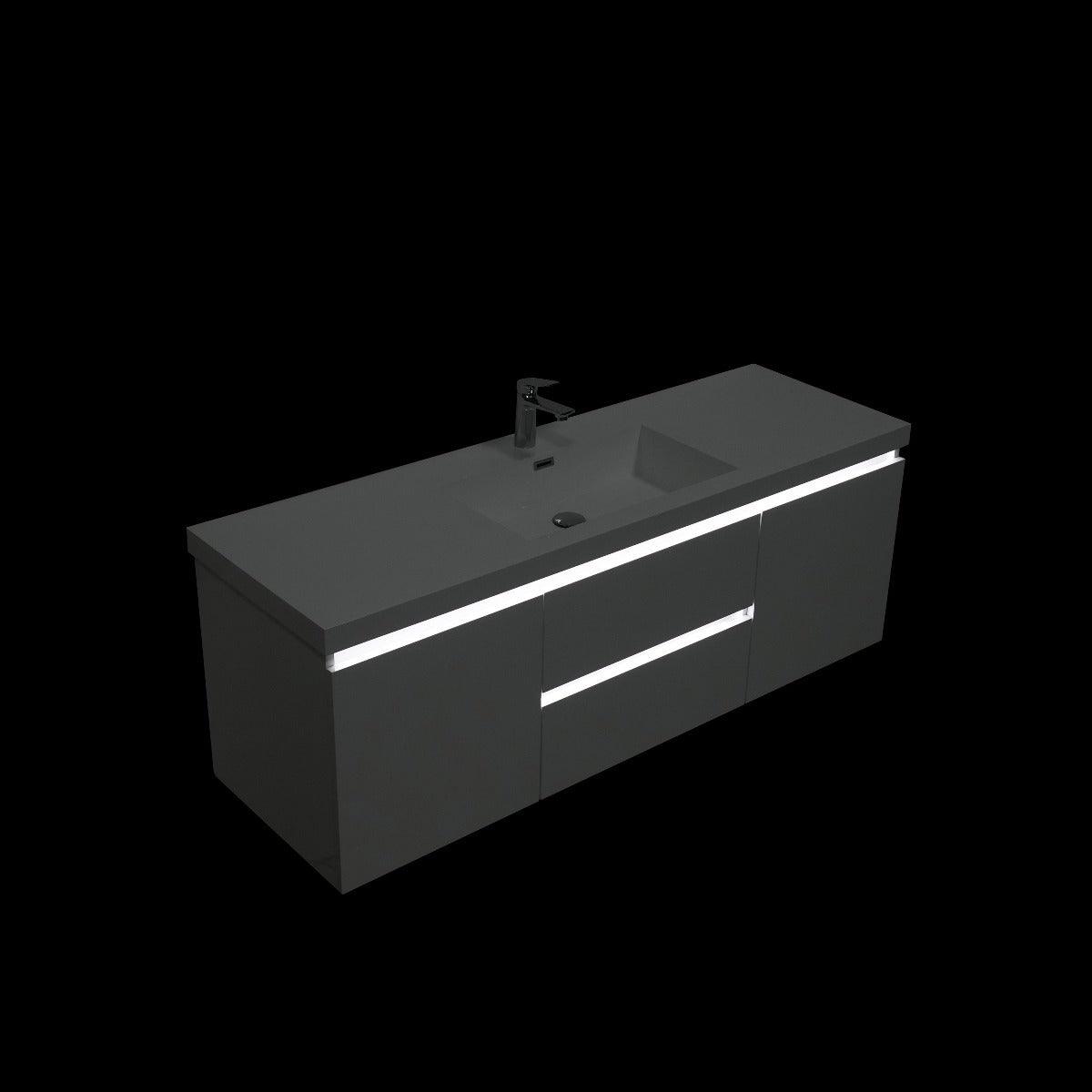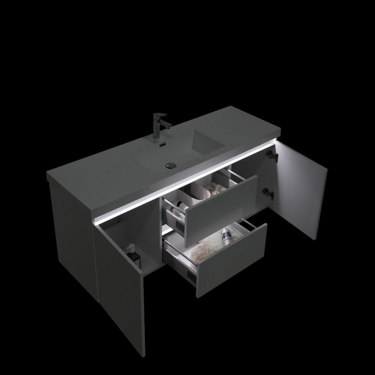 48″ Glossy White Wall Mount Light-Up Bathroom Vanity with White Polymarble Countertop