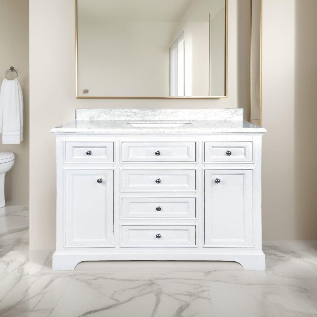 48″ White Freestanding Single Sink Bathroom Vanity with Carrera Marble Countertop Milan
