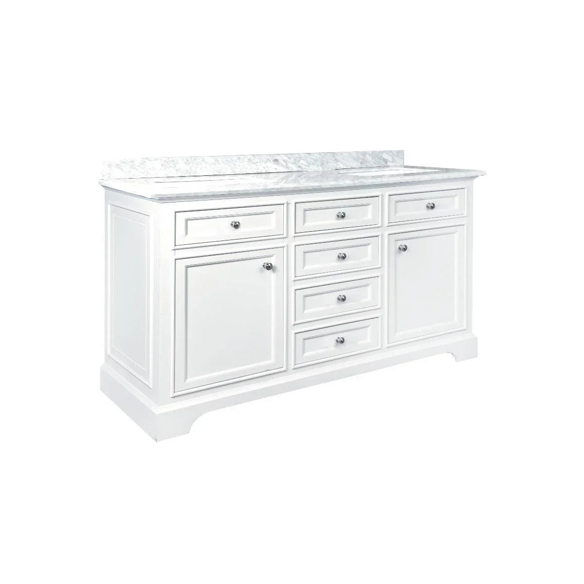 60″ White Freestanding Double Sink Bathroom Vanity with Carrera Marble Countertop Milan