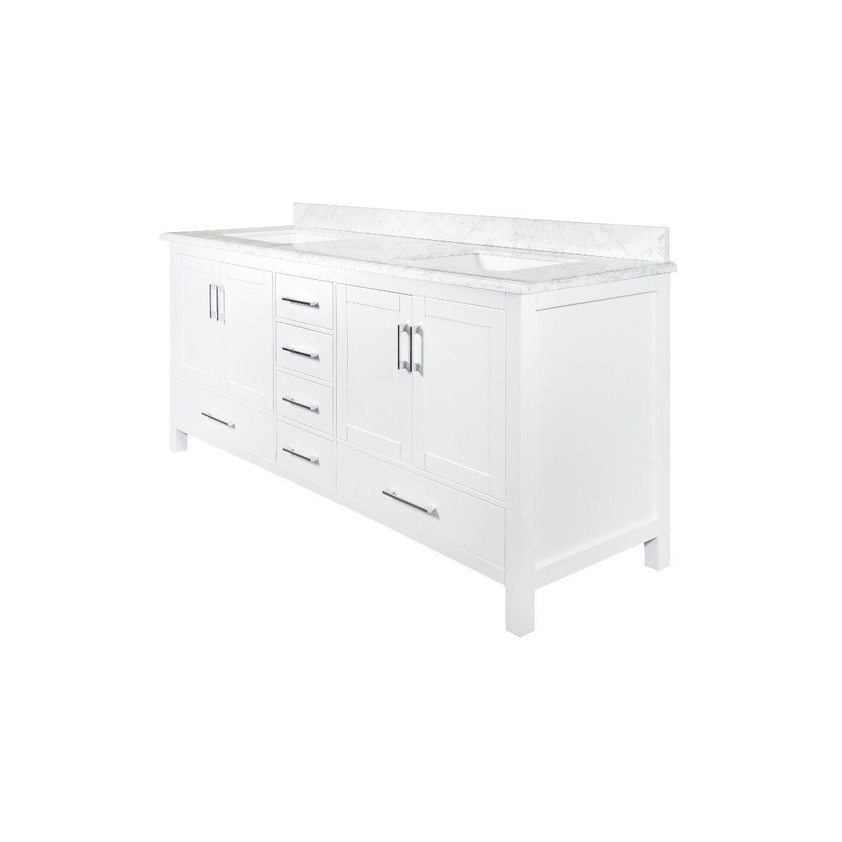 72″ White Freestanding Double Sink Bathroom Vanity with Carrera Marble Countertop