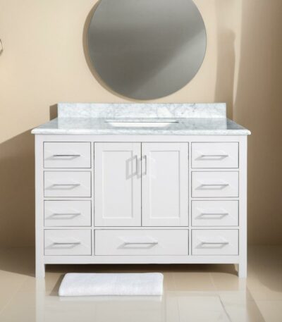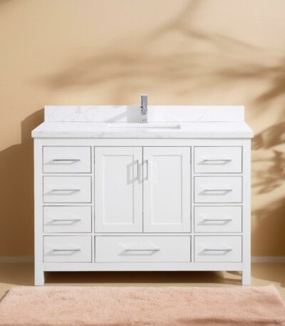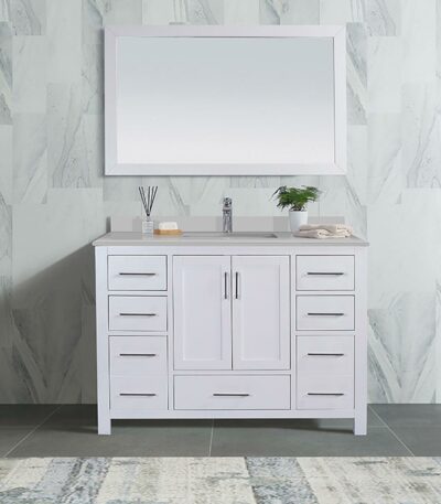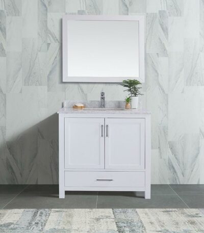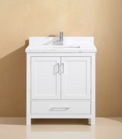 30″ White Freestanding Bathroom Vanity with Calcutta Quartz Countertop