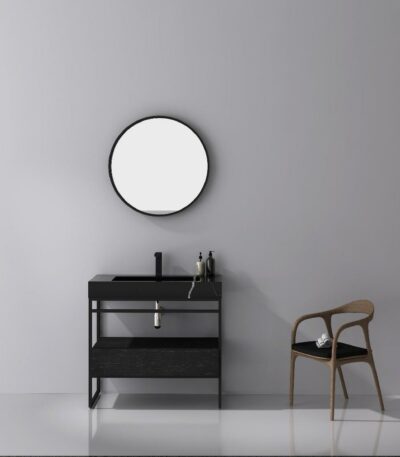 36″ Black Oak Freestanding Bathroom Vanity with Black Marble Countertop