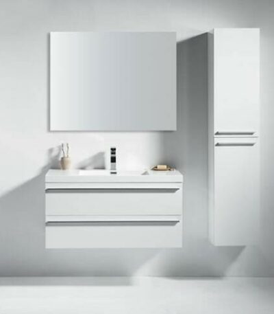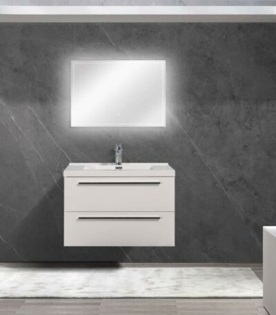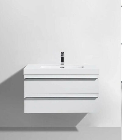 36″ White Wall Mount Bathroom Vanity with White Polymarble Countertop Sofia