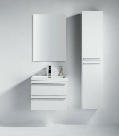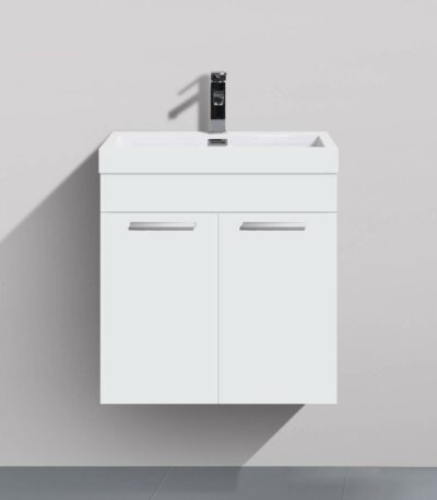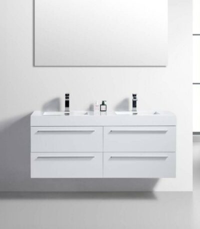 60″ White Wall Mount Bathroom Vanity with White Polymarble Countertop Sofia