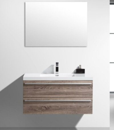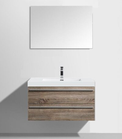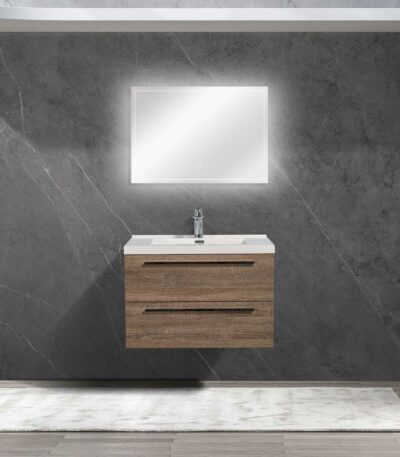 36″ Soft Oak Wall Mount Bathroom Vanity with White Polymarble Countertop Sofia
