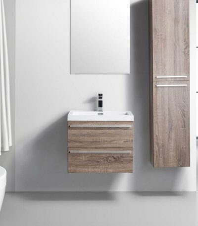 24″ Soft Oak Wall Mount Bathroom Vanity with White Polymarble Countertop Sofia