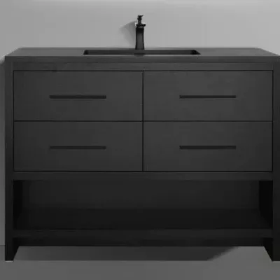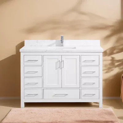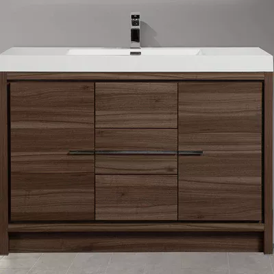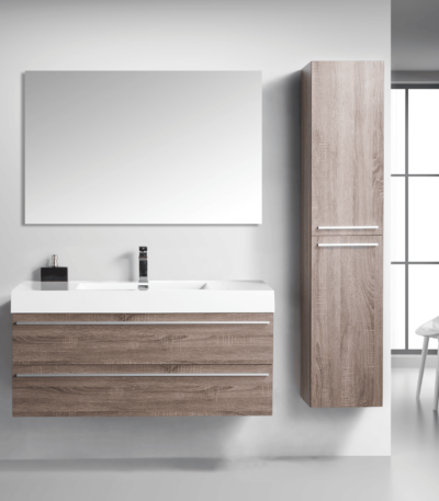 48″ Soft Oak Wall Mount Single Sink Bathroom Vanity with White Polymarble Countertop Sofia