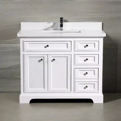 42″ White Wall Mount Bathroom Vanity with White Polymarble Countertop Sofia
