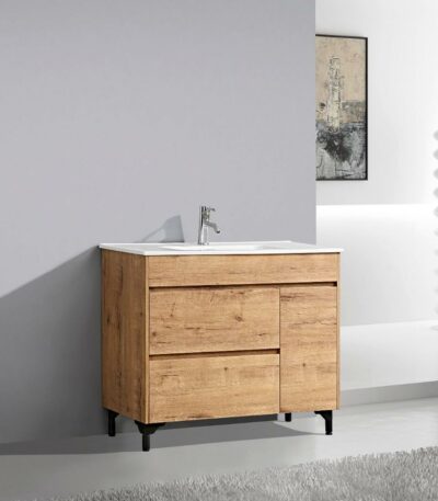 24″ Light Oak Freestanding Bathroom Vanity with White Ceramic Countertop