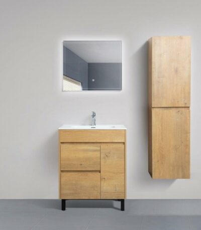 30″ Rough Oak Wall Mount Bathroom Vanity with White Polymarble Countertop