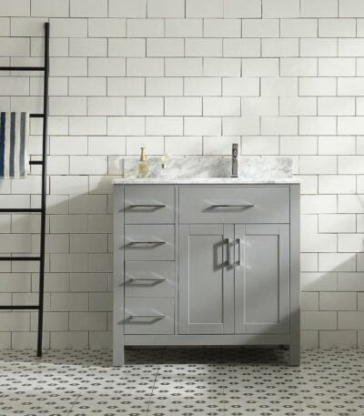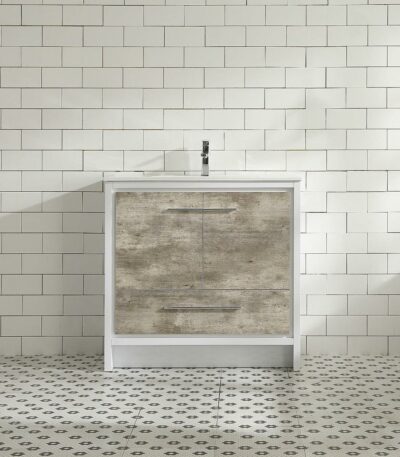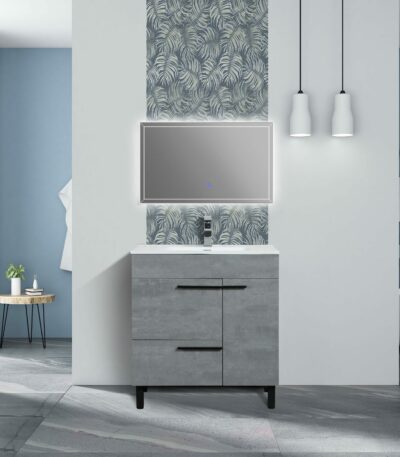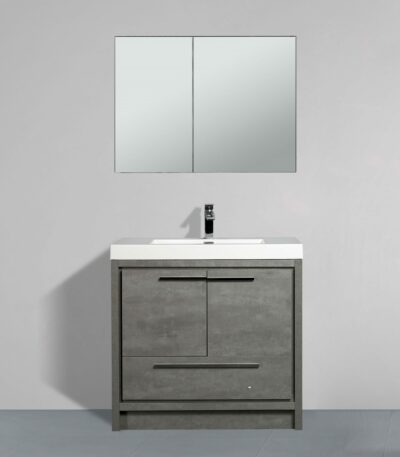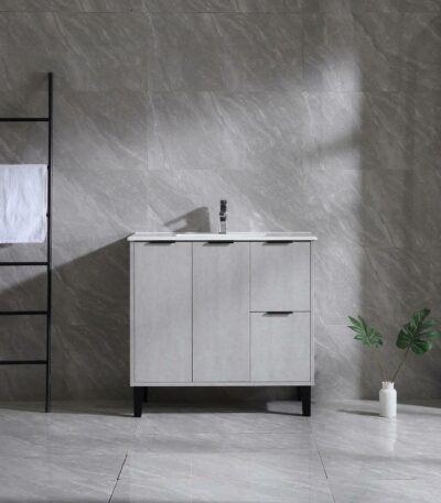 36″ Cement Freestanding Bathroom Vanity with White Polymarble Countertop