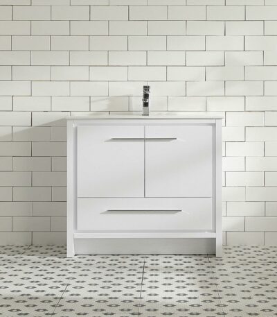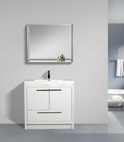 36″ Glossy White Freestanding Bathroom Vanity with White Polymarble Countertop