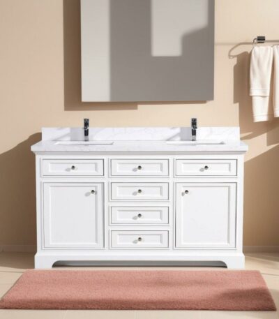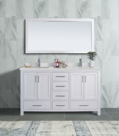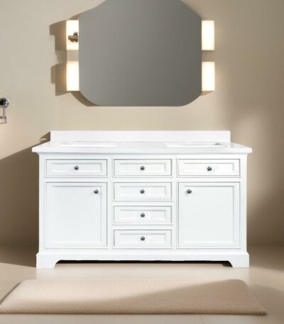 60″ White Freestanding Double Sink Bathroom Vanity with White Quartz Countertop Fiory