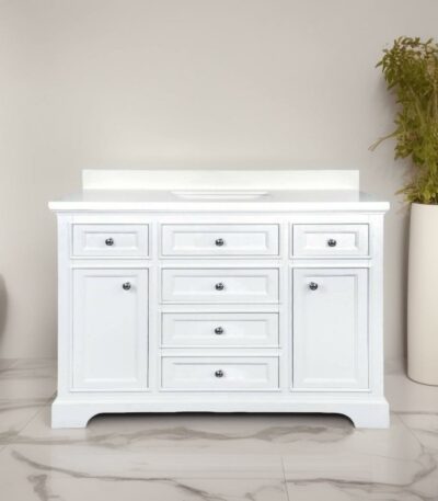 48″ White Wall Mount Single Sink Bathroom Vanity with Black Engineered Quartz Countertop