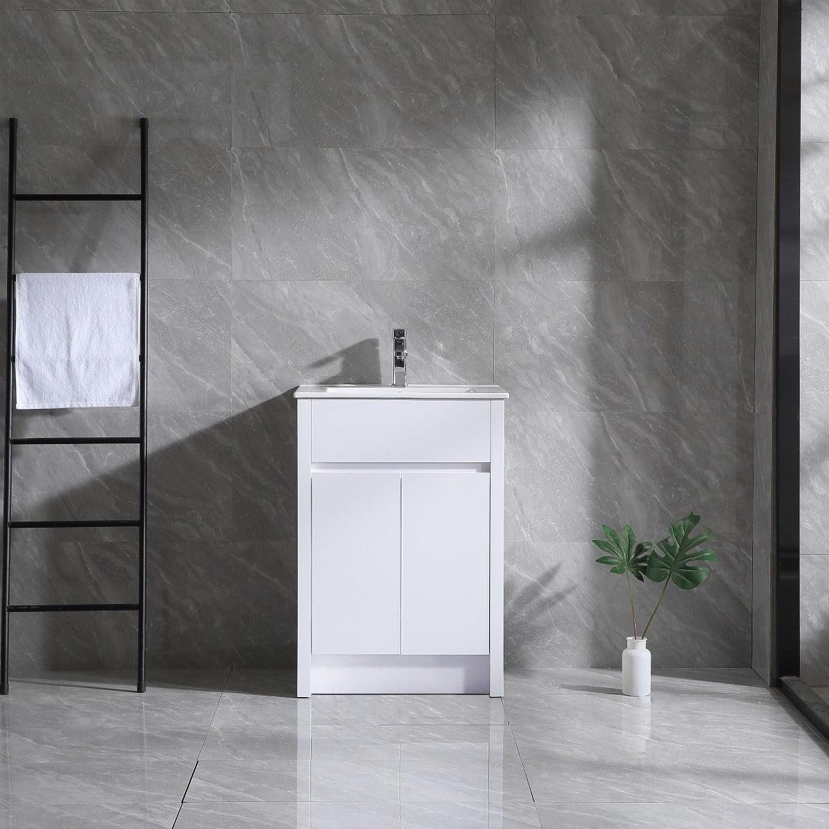 24″ Glossy White Freestanding Bathroom Vanity with White Ceramic Countertop