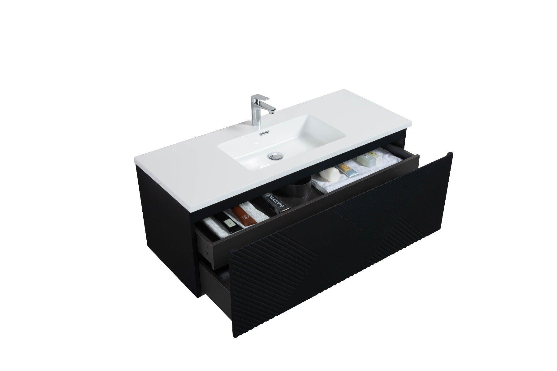 48″ Black Wall Mount Bathroom Vanity with White Polymarble Countertop Roxboro