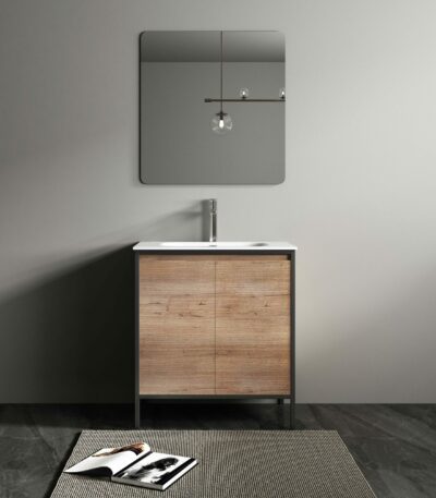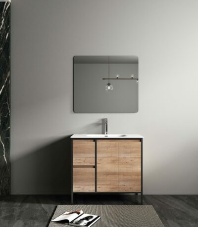 36″ Rough Oak Vanity Combo with White Polymarble countertop Capri Collection