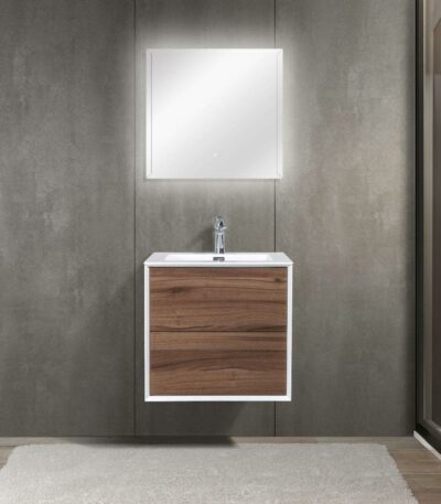 24″ Walnut Freestanding Bathroom Vanity with White Polymarble Countertop