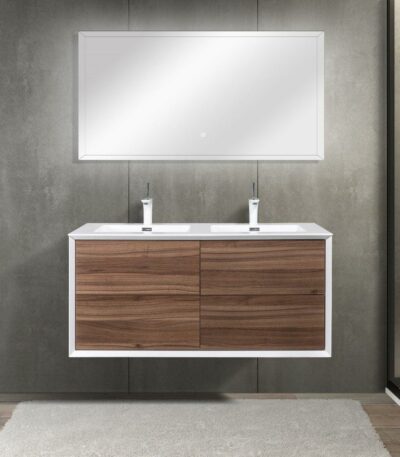48″ Walnut Wall Mount Single Sink Bathroom Vanity with White Solid surface Countertop