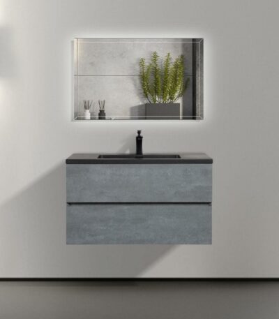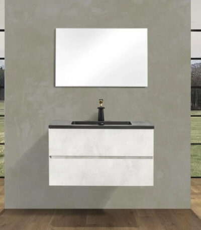 36″ Cement Freestanding Bathroom Vanity with Black quartz engineered countertop
