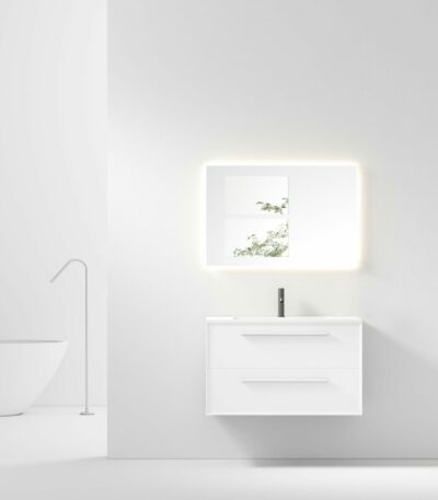 36″ Glossy White Wall Mount Light-Up Bathroom Vanity with White Polymarble Countertop